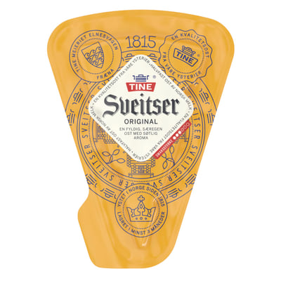 TINE® Sveitser Original har store, runde hull og en relativt fast konsistens. Smaken er ren, fyldig og litt søtlig. Osten er laget av pasteurisert melk og tilsatt salt og løpe. Lagret i minimum 3 måneder.