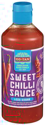 Sweet Chili Saus Thai Less Sugar 500ml Go-Tan fra Go-tan er et produkt innen Middagstilbehør, Sauser, Chilisaus. Produktet er tilgjengelig hos Meny til en pris av 58.70 kr. Produktet leveres av Haugen - gruppen as. Produktet ble første gang registrert 9.1.2022 og sist oppdatert 16.7.2023. Prisen har endret seg fra 52.40 kr til 58.70 kr over tid.