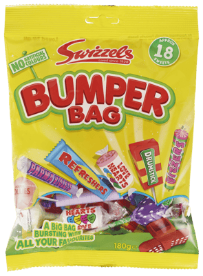 Swizzels Bumper Bag 180g fra SWIZZELS Produktet er tilgjengelig hos Coop til en pris av 38.90 kr. Produktet leveres av CONAXESS TRADE NORGE AS. Produktet ble første gang registrert 9.1.2022 og sist oppdatert 16.7.2023. Prisen har holdt seg stabil på 38.90 kr.