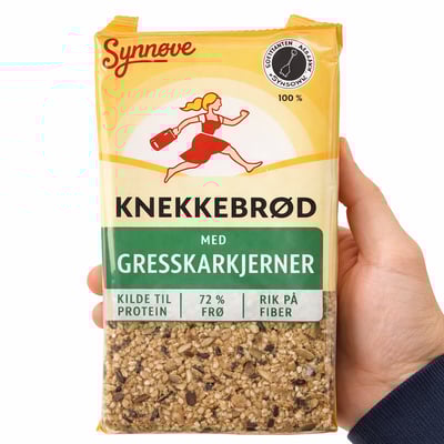 Knekkebrød med gresskarkjerner fra Synnøve Vekten er 170 g. Produktet inneholder følgende allergener: Gluten, Sesam. Produktet leveres av Synnøve Finden AS. Produktet ble første gang registrert 28.3.2026 og sist oppdatert 28.3.2026.