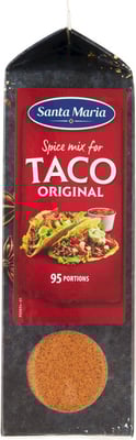 Taco Original Spice Mix 532g Santa Maria fra Santa Maria Vekten er 532 g. Produktet leveres av SANTA MARIA NORGE AS. Produktet ble første gang registrert 11.6.2023 og sist oppdatert 6.9.2023.