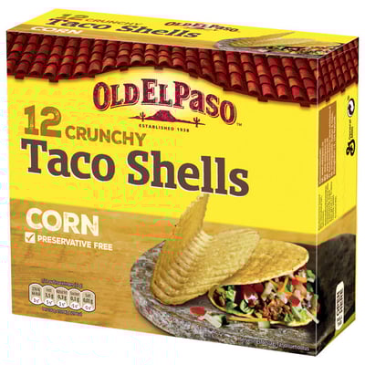 Old El Paso™ Hard Taco Shells er sprø tacoskjell. De er laget av maismel og solsikkeolje og er en familiefavoritt til det klassiske tacomåltidet.