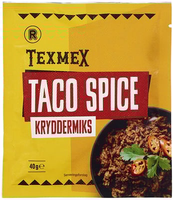 Taco Spice Mix 40g Rema 1000 fra Rema 1000 Vekten er 40 g. Produktet leveres av REMA 1000 NORGE AS (LEV.). Produktet ble første gang registrert 11.6.2023 og sist oppdatert 6.9.2023.