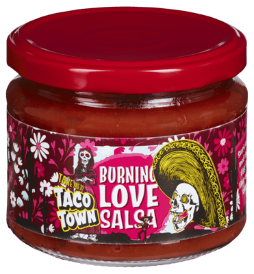 Taco Town Burning Love Salsa 310g fra ANDRE MERKEVARER Produktet er tilgjengelig hos Coop til en pris av 27.90 kr. Produktet leveres av OLUF LORENTZEN AS. Produktet ble første gang registrert 9.1.2022 og sist oppdatert 16.7.2023. Prisen har holdt seg stabil på 27.90 kr.