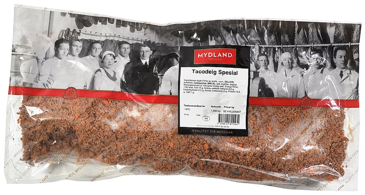 Tacodeig Forstekt Mydland fra Mydland Vekten er 1 kg. Produktet inneholder følgende allergener: Melk, Selleri. Produktet leveres av H MYDLAND AS. Produktet ble første gang registrert 11.6.2023 og sist oppdatert 6.9.2023.