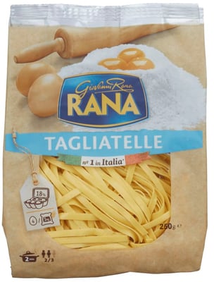 Tagliatelle 250g Rana fra Rana er et produkt innen Middag, Pasta, Båndspagetti. Produktet er tilgjengelig hos Meny til en pris av 40.90 kr. Vekten er 250 g. Produktet inneholder følgende allergener: Egg, Gluten. Produktet leveres av Oluf lorentzen as. Produktet ble første gang registrert 10.1.2022 og sist oppdatert 6.9.2023. Prisen har holdt seg stabil på 40.90 kr.