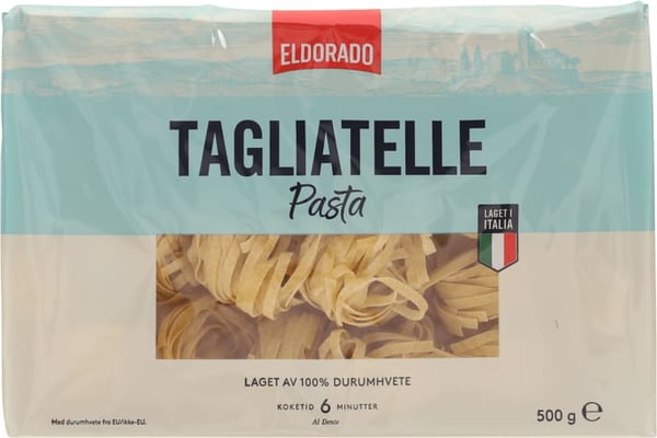 Tagliatelle 500g Eldorado fra Eldorado er et produkt innen Middag, Pasta, Båndspagetti. Produktet er tilgjengelig hos Joker til en pris av 24.90 kr. Produktet inneholder følgende allergener: Gluten. Produktet leveres av Unil. Produktet ble første gang registrert 9.1.2022 og sist oppdatert 16.7.2023. Prisen har endret seg fra 34.90 kr til 24.90 kr over tid.