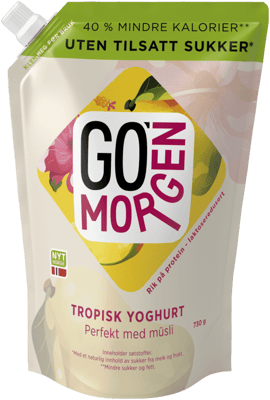 Tine Go'morgen Uten Tropisk 730g fra TINE er et produkt innen Meieri & egg, Yoghurt, Yoghurt. Produktet er tilgjengelig hos Coop til en pris av 35.90 kr. Produktet inneholder følgende allergener: Melk. Produktet leveres av TINE SA. Produktet ble første gang registrert 15.7.2022 og sist oppdatert 16.7.2023. Prisen har holdt seg stabil på 35.90 kr.