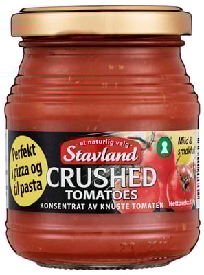 Tomater Crushed 170g Stavland fra Stavland er et produkt innen Middagstilbehør, Hermetisk grønt, Tomatpure. Produktet er tilgjengelig hos Meny til en pris av 26.90 kr. Vekten er 170 g. Produktet leveres av Stavland as. Produktet ble første gang registrert 9.1.2022 og sist oppdatert 6.9.2023. Prisen har endret seg fra 27.70 kr til 26.90 kr over tid.