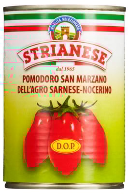 San Marzano DOP dyrkes i Campagna-regionen i Italia. Tomatene er faste, har en fyldig og rik smak med lite syre. Perfekt til napolitansk pizzasaus, til pasta og supper.