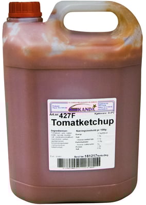 Tomatketchup 5kg Vekten er 5 kg. Produktet leveres av KANDA AS. Produktet ble første gang registrert 11.6.2023 og sist oppdatert 6.9.2023.