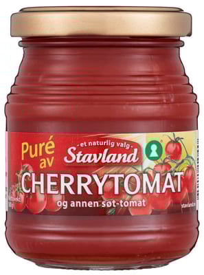 Tomatpure Cherrytomat 180g Stavland fra Stavland er et produkt innen Middagstilbehør, Hermetisk grønt, Tomatpure. Produktet er tilgjengelig hos Meny til en pris av 38.40 kr. Vekten er 180 g. Produktet leveres av Stavland as. Produktet ble første gang registrert 9.1.2022 og sist oppdatert 8.9.2023. Prisen har holdt seg stabil på 38.40 kr.