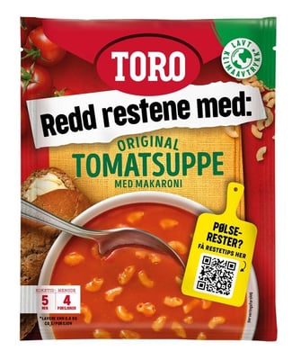 Tomatsuppe med Makaroni 119 g fra Toro Produktet er tilgjengelig hos Oda til en pris av 23.40 kr. Vekten er 119 g. Produktet leveres av Orkla Foods Norge AS. Produktet ble første gang registrert 9.1.2022 og sist oppdatert 7.10.2023. Prisen har holdt seg stabil på 23.40 kr.