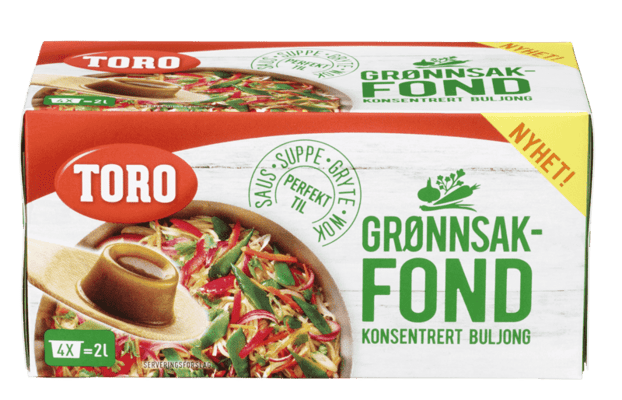 Toro Grønnskfond 112g fra TORO Produktet er tilgjengelig hos Coop til en pris av 39.90 kr. Produktet inneholder følgende allergener: Selleri. Produktet leveres av ORKLA FOODS NORGE AS (STABBURET). Produktet ble første gang registrert 9.1.2022 og sist oppdatert 16.7.2023. Prisen har holdt seg stabil på 39.90 kr.