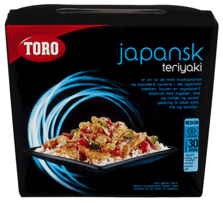 Toro Japansk Teriyaki kit 372g fra TORO Produktet er tilgjengelig hos Coop til en pris av 78.90 kr. Produktet leveres av ORKLA FOODS NORGE AS (STABBURET). Produktet ble første gang registrert 9.1.2022 og sist oppdatert 16.7.2023. Prisen har holdt seg stabil på 78.90 kr.