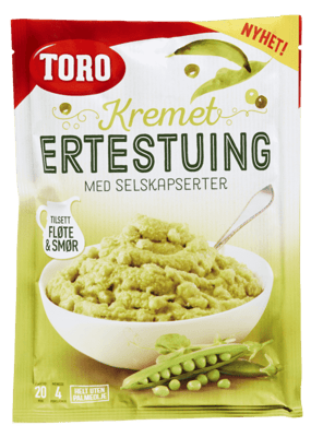 Toro Kremet Ertestuing 150g fra TORO Produktet er tilgjengelig hos Coop til en pris av 45.90 kr. Produktet inneholder følgende allergener: Sulfitt. Produktet leveres av ORKLA FOODS NORGE AS (STABBURET). Produktet ble første gang registrert 9.1.2022 og sist oppdatert 16.7.2023. Prisen har holdt seg stabil på 45.90 kr.