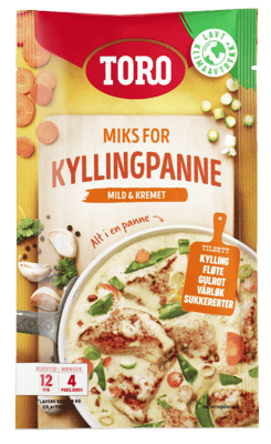 Toro Kyllingpanne Mild & Kremet 63g fra TORO Produktet er tilgjengelig hos Coop til en pris av 42.90 kr. Produktet inneholder følgende allergener: Melk. Produktet leveres av ORKLA FOODS NORGE AS (STABBURET). Produktet ble første gang registrert 9.1.2022 og sist oppdatert 16.7.2023. Prisen har holdt seg stabil på 42.90 kr.