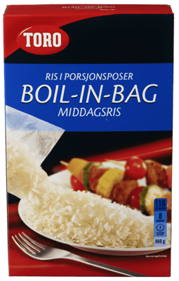 Toro Middagsris Boil In Bag 960g fra TORO Produktet er tilgjengelig hos Coop til en pris av 88.90 kr. Produktet leveres av ORKLA FOODS NORGE AS (STABBURET). Produktet ble første gang registrert 9.1.2022 og sist oppdatert 16.7.2023. Prisen har holdt seg stabil på 88.90 kr.