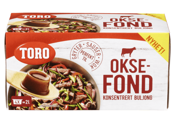 Toro Oksefond 112g fra TORO Produktet er tilgjengelig hos Coop til en pris av 41.90 kr. Produktet inneholder følgende allergener: Gluten, Soya. Produktet leveres av ORKLA FOODS NORGE AS (STABBURET). Produktet ble første gang registrert 9.1.2022 og sist oppdatert 16.7.2023. Prisen har holdt seg stabil på 41.90 kr.
