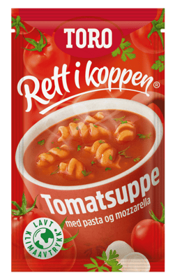 Toro Rett i Koppen Tomat Mozarellasuppe 26g fra TORO er et produkt innen Middag, Supper, Tomatsuppe. Produktet er tilgjengelig hos Coop til en pris av 10.90 kr. Produktet inneholder følgende allergener: Gluten, Melk. Produktet leveres av ORKLA FOODS NORGE AS (STABBURET). Produktet ble første gang registrert 9.1.2022 og sist oppdatert 16.7.2023. Prisen har holdt seg stabil på 10.90 kr.