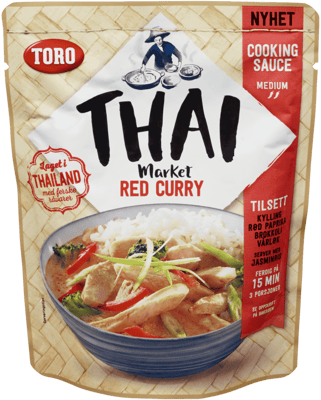Toro Thai Market Red Curry cooking sauce 300g fra TORO Produktet er tilgjengelig hos Coop til en pris av 107.90 kr. Produktet inneholder følgende allergener: Bløtdyr, Gluten, Soya. Produktet leveres av ORKLA FOODS NORGE AS (STABBURET). Produktet ble første gang registrert 9.1.2022 og sist oppdatert 16.7.2023. Prisen har endret seg fra 81.90 kr til 107.90 kr over tid.