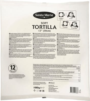 Det er 12 tortilla i posen og 6 poser pr eske. Server dine favorittingredienser i en fersk hvetetorilla på 30 cm (12''). Tortilla kan nytes både varme og kalde og har uendelig med muligheter. Tørrvare som også kan fryses for å forlenge holdbarheten. Vi s