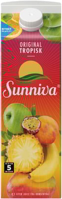 Tropisk Juice Original 0,5l Sunniva fra Sunniva Produktet er tilgjengelig hos Meny til en pris av 20.30 kr. Produktet leveres av Tine sa. Produktet ble første gang registrert 15.7.2022 og sist oppdatert 16.7.2023. Prisen har holdt seg stabil på 20.30 kr.