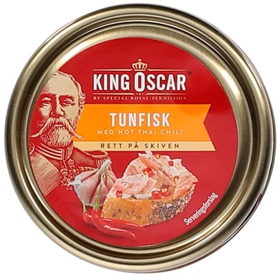Tunfisk Thai Chili 85g King Oscar fra King oscar er et produkt innen Middag, Fiskeretter, Hermetisk fisk og sjømat. Produktet er tilgjengelig hos Joker til en pris av 17.90 kr. Vekten er 85 g. Produktet inneholder følgende allergener: Fisk, Gluten. Produktet leveres av King oscar. Produktet ble første gang registrert 9.1.2022 og sist oppdatert 6.10.2023. Prisen har endret seg fra 16.90 kr til 17.90 kr over tid.