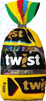 Freia Twist, en pose med biter av sjokolade og karameller trukket i lys- eller mørk sjokolade. Enten det er CoCos, banan, lakris eller daim så har alle sin favoritt! Derfor gjelder det å verne om sin favorittbit. Les om COCOA LIFE på www.freia.no/baerek