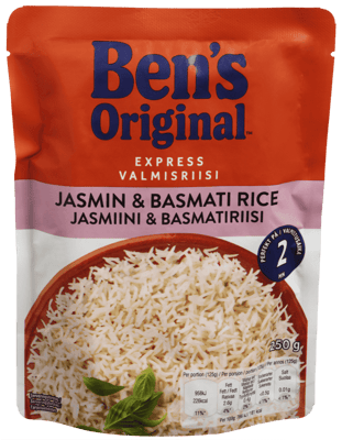 Uncle Ben's Express Basmati & Jasmin 250g fra UNCLE BEN'S er et produkt innen Middag, Ris, Ris. Produktet er tilgjengelig hos Coop til en pris av 32.90 kr. Produktet leveres av MARS NORGE AS. Produktet ble første gang registrert 9.1.2022 og sist oppdatert 16.7.2023. Prisen har holdt seg stabil på 32.90 kr.