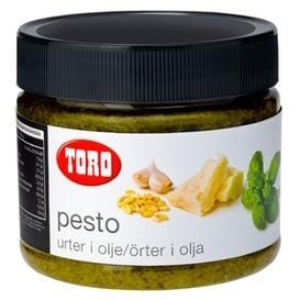 Pure av fersk basilikum, hvitløk, havsalt, parmesan, pinjekjerner og olje! 2 GLASS PER KARTONGTrykk her for mer informasjon Oppgi ditt postnummer for å se hvilken varer vi kan tilby deg der du bor, fri frakt over 1500,- Alle kan handle hos oss, både priva