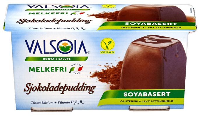 Valsoia Sjokoladepudding 2pk 230g fra VALSOIA Produktet er tilgjengelig hos Coop til en pris av 29.90 kr. Produktet inneholder følgende allergener: Soya. Produktet leveres av JENSEN & CO AS. Produktet ble første gang registrert 9.1.2022 og sist oppdatert 16.7.2023. Prisen har holdt seg stabil på 29.90 kr.