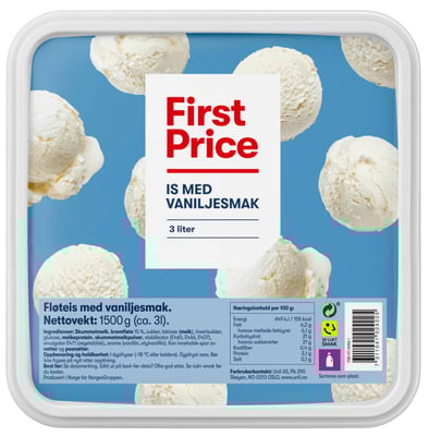Vaniljeis 3l First Price fra First price er et produkt innen Dessert, Is, Dessertis. Produktet er tilgjengelig hos Joker til en pris av 39.90 kr. Vekten er 3000 ml. Produktet inneholder følgende allergener: Melk. Produktet leveres av Unil. Produktet ble første gang registrert 9.1.2022 og sist oppdatert 6.10.2023. Prisen har holdt seg stabil på 39.90 kr.