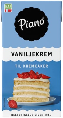Piano® Original Vaniljekrem er en velsmakende krem som kan brukes til kalde desserter og kaker. Piano® Original Vaniljekrem er perfekt som kakefyll i bløtkaker og annen bakst som i kald pai eller som topping på pavlova (marengsbunn). Vaniljekremen smaker også veldig godt til fruktsalat hvis man ønsker en tykkere konsistens enn vaniljesaus.