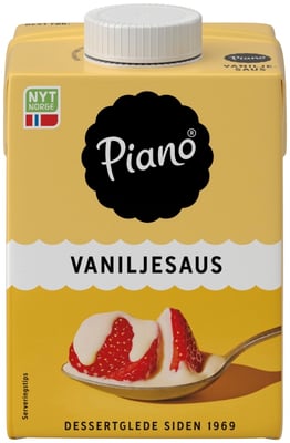 Piano® Vaniljesaus er den perfekte dessertsaus som passer til «alt». Den har en søt og karakterfull smak som fenger både liten og stor, og er akkurat passe tykk. Oppskriften har vært den samme siden lanseringen i 1971. Piano® Vaniljesaus er naturlig tilbehør både til Piano® Sjokoladepudding og Piano® Geléer. Den smaker også nydelig til frukt og bær, kaker og søte paier.