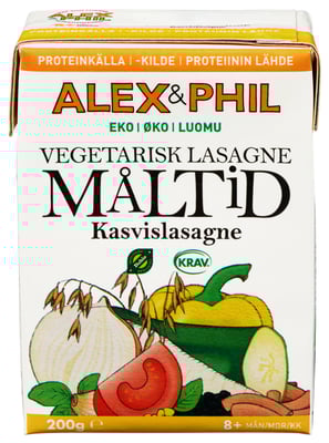 Vårt Økologiske Vegetariske Lasagne Måltid fra Alex&Phil Barnemat Vekten er 200 g. Produktet leveres av ALEX&PHIL AB. Produktet ble første gang registrert 11.6.2023 og sist oppdatert 6.9.2023.