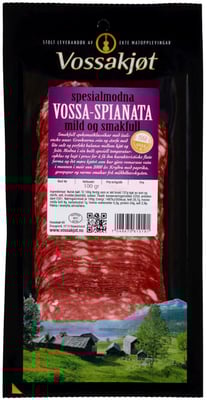 Vossa Spianata 100g Vossakjøt fra Vossakjøt er et produkt innen Pålegg & frokost, Spekemat, Spekepølser. Produktet er tilgjengelig hos SPAR til en pris av 46.90 kr. Produktet leveres av Vossakjøt as. Produktet ble første gang registrert 15.7.2022 og sist oppdatert 3.8.2023. Prisen har holdt seg stabil på 46.90 kr.
