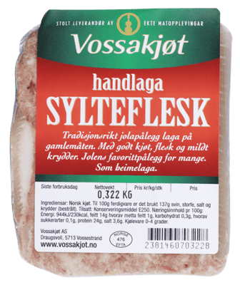 Vossakjøt Sylteflesk ca 400g fra VOSSAKJØT Produktet er tilgjengelig hos Coop til en pris av 146.76 kr. Produktet leveres av SPESIALGROSSISTEN AS. Produktet ble første gang registrert 7.11.2022 og sist oppdatert 16.7.2023. Prisen har holdt seg stabil på 146.76 kr.
