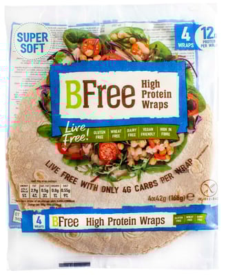 Utrolig smakfull, og ikke minst myk og «brettbar» wrap fra velkjente Bfree! Spekket med protein og kun 4 karbohydrater pr wrap, gjør dette til et meget attraktivt produkt både for helsebevisste- og FRI-FOR forbrukere!