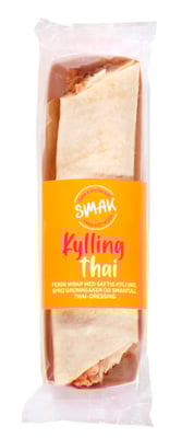Wrap Kylling Thai 210g Smak fra Smak er et produkt innen Middag, Ferdigmåltider, Taco ferdig. Produktet er tilgjengelig hos Meny til en pris av 51.90 kr. Vekten er 210 g. Produktet inneholder følgende allergener: Egg, Fisk, Gluten, Selleri, Sennep, Soya. Produktet leveres av Nordic lunch. Produktet ble første gang registrert 15.7.2022 og sist oppdatert 25.9.2023. Prisen har holdt seg stabil på 51.90 kr.