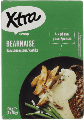 X-tra Bearnaisesaus 4pk fra X-TRA Produktet er tilgjengelig hos Coop til en pris av 11.50 kr. Produktet inneholder følgende allergener: Egg, Melk. Produktet leveres av INTERAL S.A.. Produktet ble første gang registrert 9.1.2022 og sist oppdatert 16.7.2023. Prisen har endret seg fra 10.50 kr til 11.50 kr over tid.