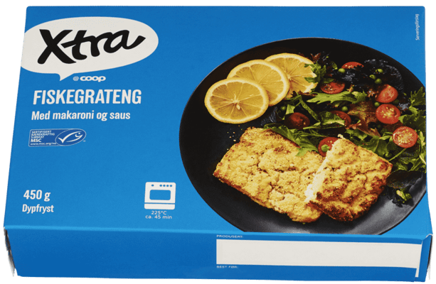 X-tra Fiskegrateng 450g fra X-TRA Produktet er tilgjengelig hos Coop til en pris av 23.50 kr. Produktet inneholder følgende allergener: Egg, Fisk, Gluten, Melk. Produktet leveres av MARENOR AB. Produktet ble første gang registrert 9.1.2022 og sist oppdatert 16.7.2023. Prisen har endret seg fra 20.90 kr til 23.50 kr over tid.