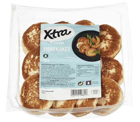 X-tra Fiskekaker 720g fra X-TRA Produktet er tilgjengelig hos Coop til en pris av 25.50 kr. Produktet inneholder følgende allergener: Fisk, Melk. Produktet leveres av NORSK KVALITETSMAT AS. Produktet ble første gang registrert 9.1.2022 og sist oppdatert 16.7.2023. Prisen har endret seg fra 24.10 kr til 25.50 kr over tid.