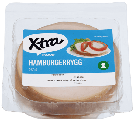 X-tra Hamburgerrygg 250g fra COOP er et produkt innen Pålegg & frokost, Kjøttpålegg, Kjøttpålegg. Produktet er tilgjengelig hos Coop til en pris av 46.90 kr. Produktet leveres av FATLAND SALG AS. Produktet ble første gang registrert 9.1.2022 og sist oppdatert 16.7.2023. Prisen har endret seg fra 44.20 kr til 46.90 kr over tid.