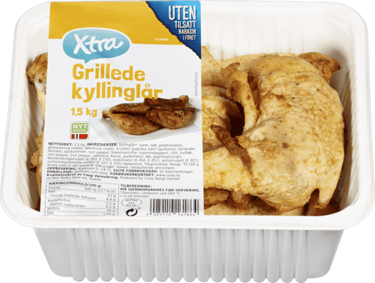 X-tra Kyllinglår Grillet 1,5kg fra X-TRA Produktet er tilgjengelig hos Coop til en pris av 107.90 kr. Produktet leveres av DEN STOLTE HANE AS. Produktet ble første gang registrert 9.1.2022 og sist oppdatert 16.7.2023. Prisen har endret seg fra 92.90 kr til 107.90 kr over tid.